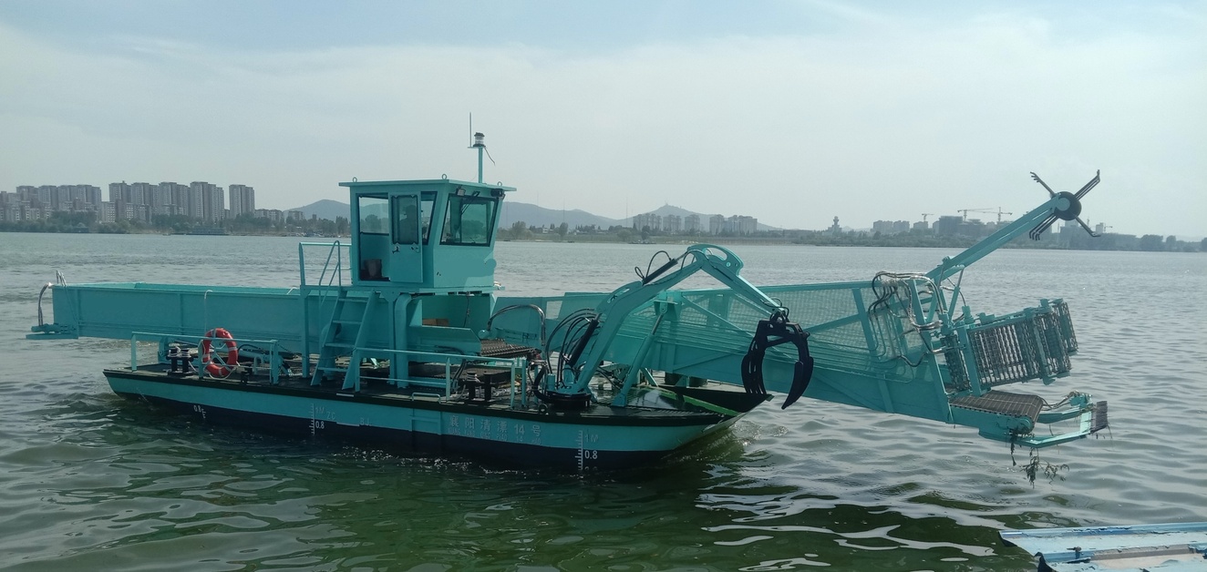 廣西玉林九洲江管委會購買的DFSHL110型全自動水葫蘆打撈船